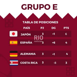 Con estos resultados, ya se saben los enfrentamientos de octavos de final, los samurái se enfrentarán a Croacia y la roja se enfrentará a Marruecos. Aquí les dejo como quedó la tabla de posiciones: